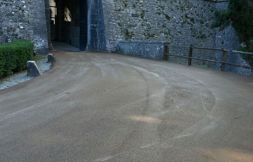 Intervento di sistemazione dell'accesso al Castello di Brolio, proprietà del Barone Francesco Ricasoli, che dal 1993 conduce l’azienda verso nuove sfide, nel rispetto più profondo dei suoi illustri antenati che hanno fatto grande quello stesso territorio, primo tra tutti Bettino Ricasoli.